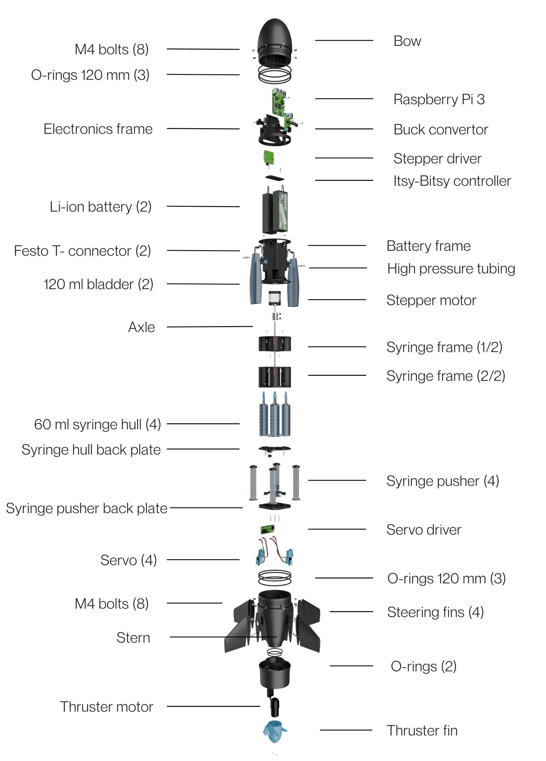 The buoyancy engine controls the inflation and deflation of the outer bladders by filling them with liquid. This results in an increased or decreased volume of the drone which impacts and therefore increases or decreases the density of the drone. This makes it possible to precisely control the depth at which the drone operates.