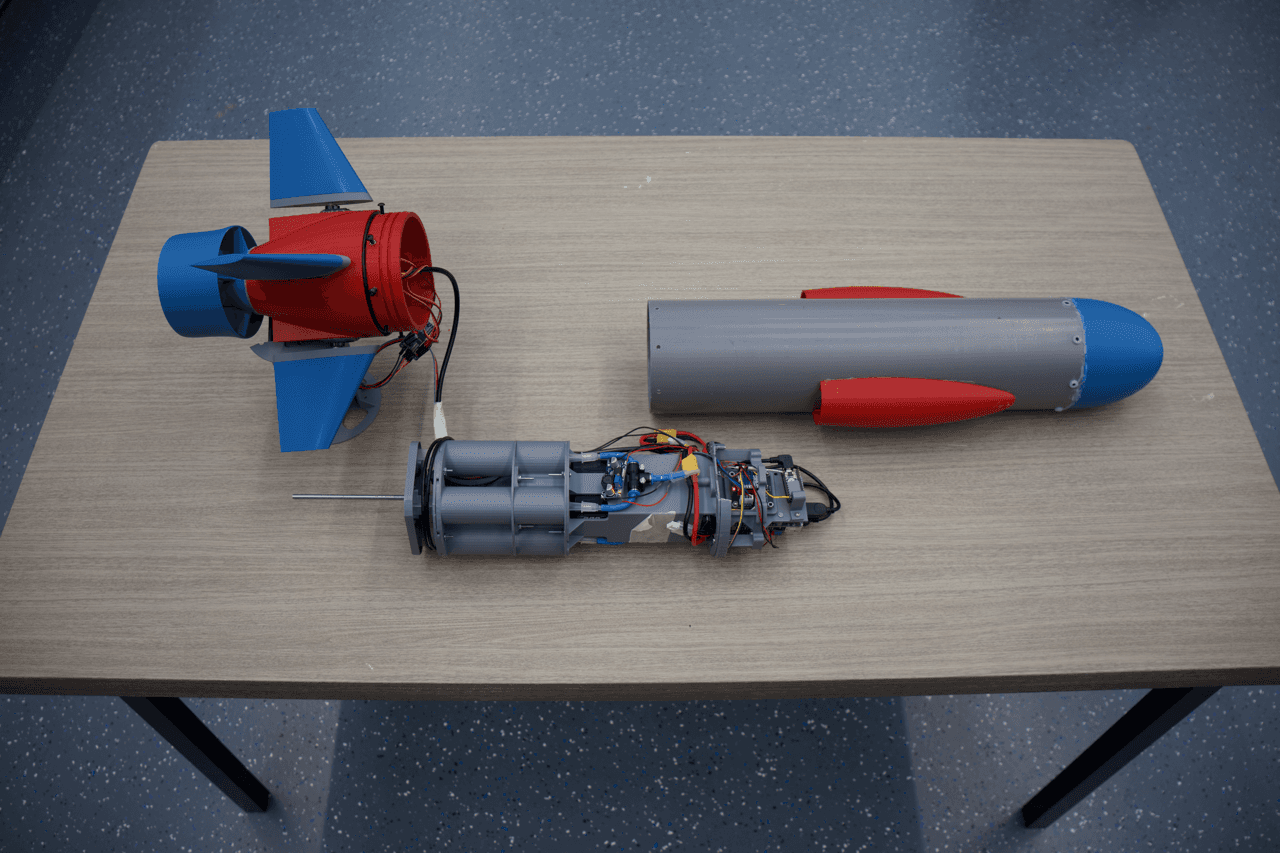 Loitering drones offer tactical advantages by remaining near potential targets without requiring continuous human deployment or retrieval. This project applies that concept to a compact underwater drone designed to fit in a backpack. The system is intended to loiter underwater, collect data, and autonomously transmit information after deployment. It must also surface on command and possess a self-destruct capability if compromised by an adversary.