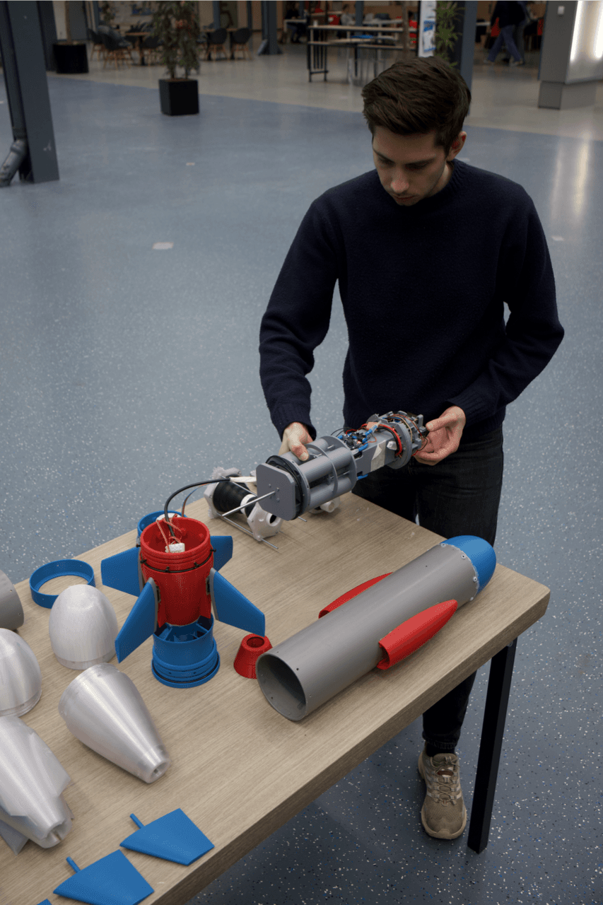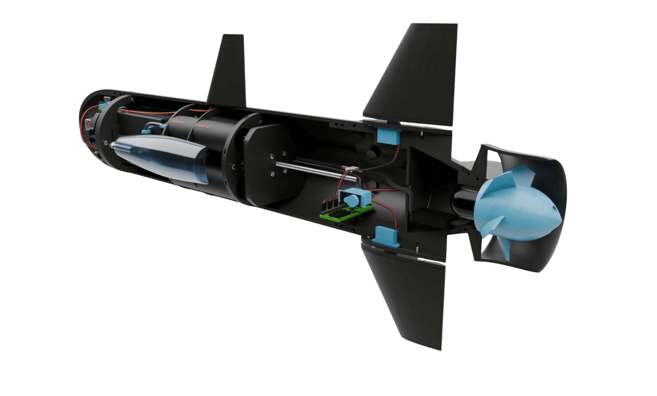 The UUV is designed as a platform rather than a fixed-purpose device. Consequently, the modular payload allows the attachment of different sensors or cameras without altering the core design. This ensures that operators interact with a consistent base system, with only certain modules that can change depending on the specifications of the mission, reducing the setup time and risk of incorrect installation.